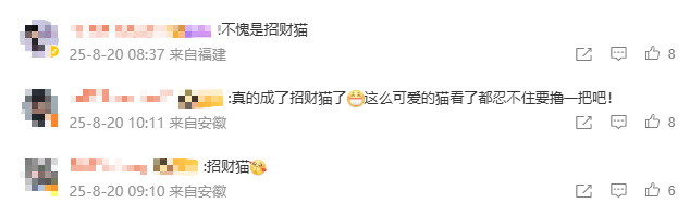 有网友调侃,这些猫成了招财猫,“这么可爱的猫看了都忍不住要撸一把”。