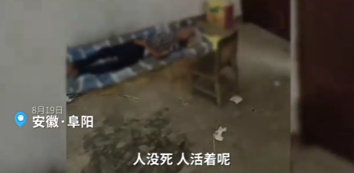 8月19日,安徽阜阳。颍上县红星镇一村民发布视频称家中老人尚未去世,当地镇政府工作人员就上门要求火化。视频显示,一位老人躺在地上,工作人员站在门口,家属情绪激动。