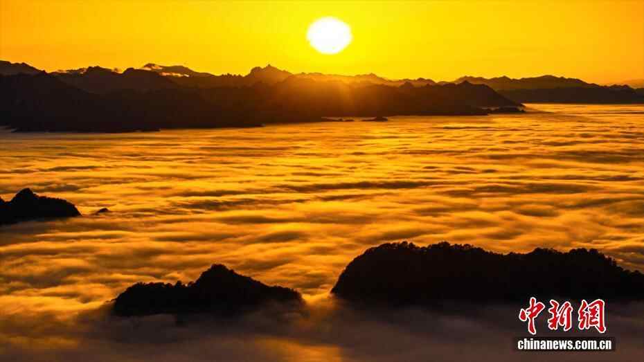 近日,落日西沉,陕西秦岭出现火烧云景观,夕阳的余晖洒在山峦间,将天空渲染成一幅绚丽的画卷。云彩如火焰般燃烧,又似丝绸般轻柔飘动。如此美景,令人沉醉。图为秦岭云海。