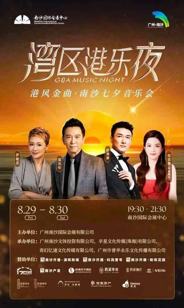 8月29日至30日,“湾区港乐夜——港风金曲·南沙七夕音乐会”将在广州南沙国际会展中心举行。温兆伦、罗敏庄、胡渭康及特邀嘉宾苟芸慧等香港艺人将登台演出,多位歌手将演绎经典粤语歌曲,重现港乐流行年代的集体记忆。