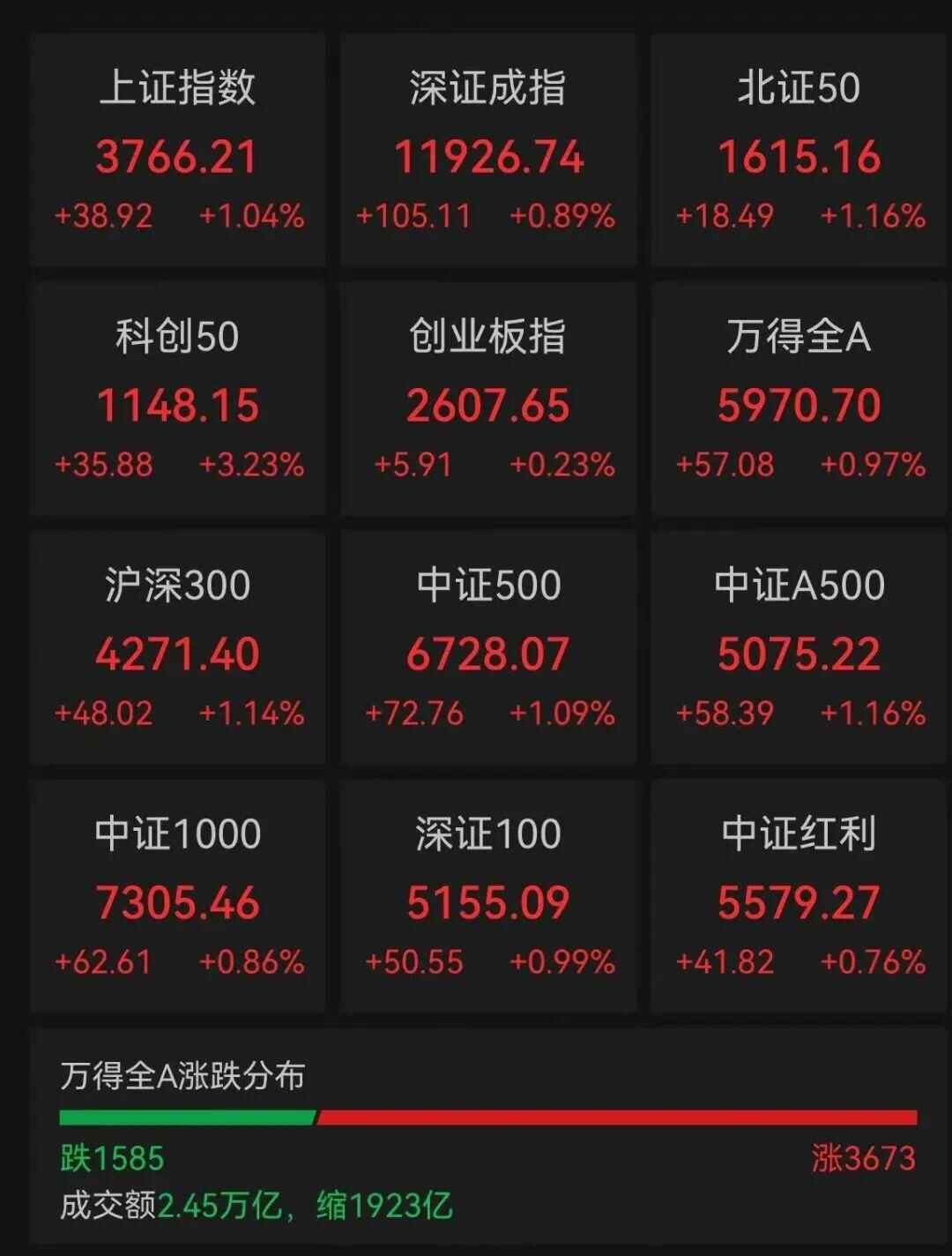 8月20日,A股市场全天探底回升,截至收盘,沪指涨1.04%,深成指涨0.89%,创业板指涨0.23%。沪指、深成指、科创50指数均创年内新高。沪深两市全天成交额超2.4万亿,成交额连续6个交易日超2万亿。全市场超3600只个股上涨。