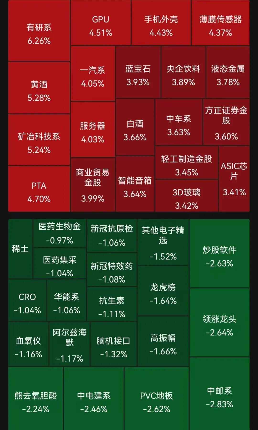 板块方面,白酒、半导体、AI眼镜、小金属等板块涨幅居前,化学制药、CRO、维生素等板块跌幅居前。