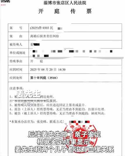 8月20日,山东淄博男子结婚22年发现俩儿子均非亲生案开庭。
