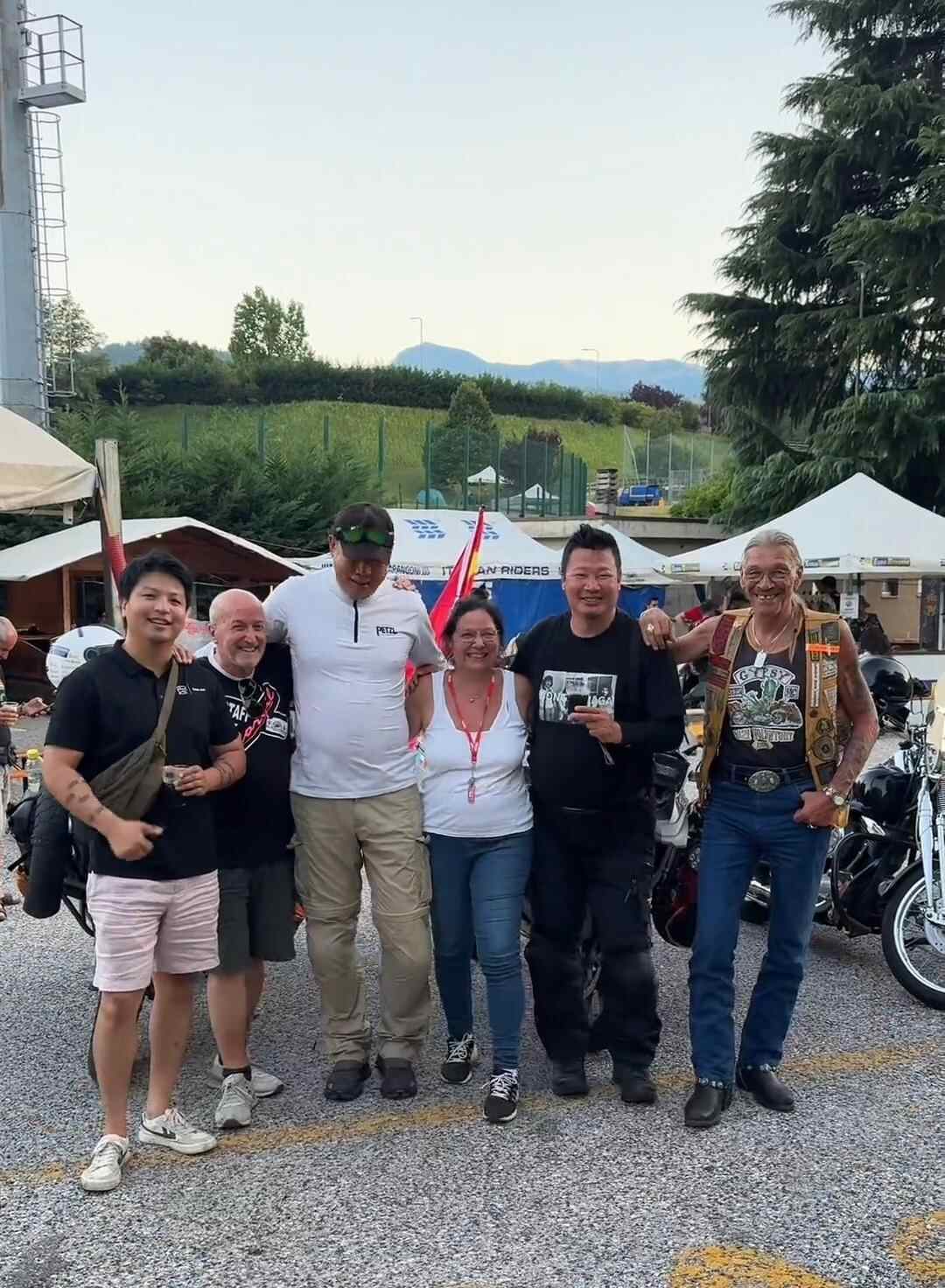 意大利是那日苏一行亚欧骑行中经过的第14个国家,抵达莫里镇时,恰逢当地摩托骑行者大会临近举行,他们很快吸引了其主办方的注意。“协会的主席是一位八十多岁的老人,坐着轮椅来的,特别来和我说感谢我们参加他们的活动,我说这有什么可感谢的。但我们还是在那儿好好地‘炫耀’了一番。”