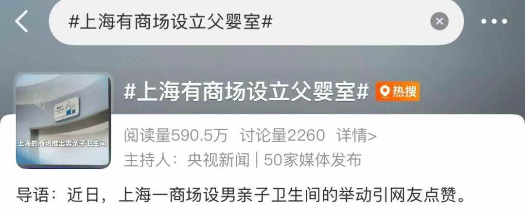 去年10月,上海商场设立“父婴室”的消息,也一度引发热议。