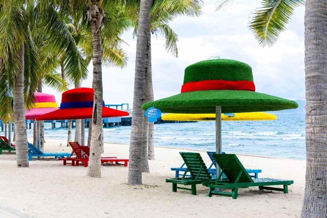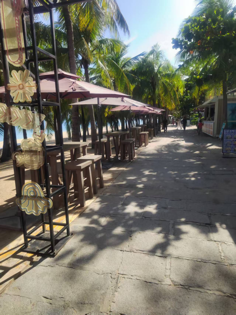 对于游客提到的免费休息设施问题,景区沙滩、游步道旁、游客中心等相关区域内设有免费公共休息区域。