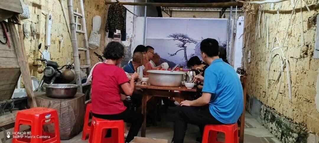 坝子余停满了车,灯火通明,过道里是两处长桌,上面摆满了食物——大锅鸡粥、墨绿粽子、透明菜包。又是一个节日般的夜晚。前几天,陈德道提议重返坝子余,纪念翁城日记第1000篇,今天是第999篇。先是陈德道发言,他感谢了坝子余乡亲对翁城农耕文明艺术馆的支持。随后我也有个致辞,感慨、感谢、感恩,发自内心。