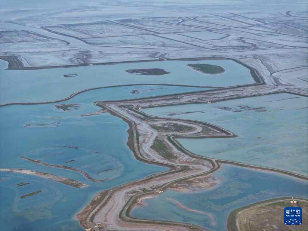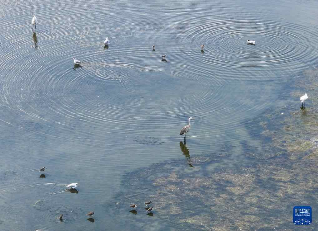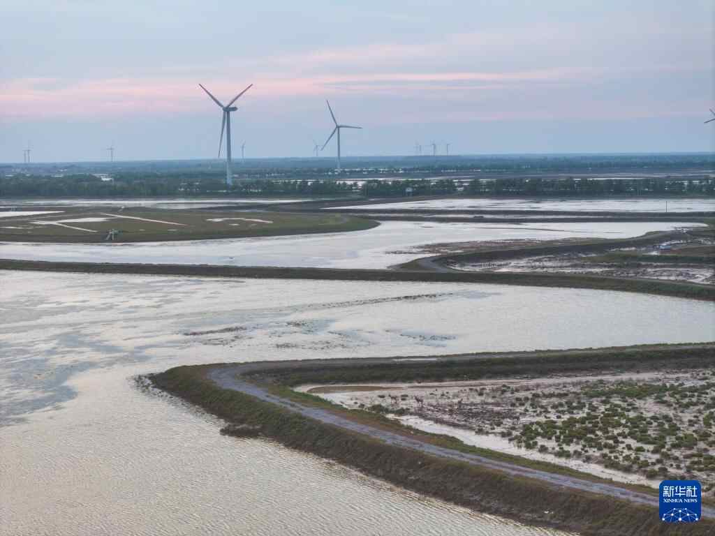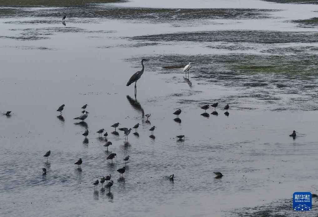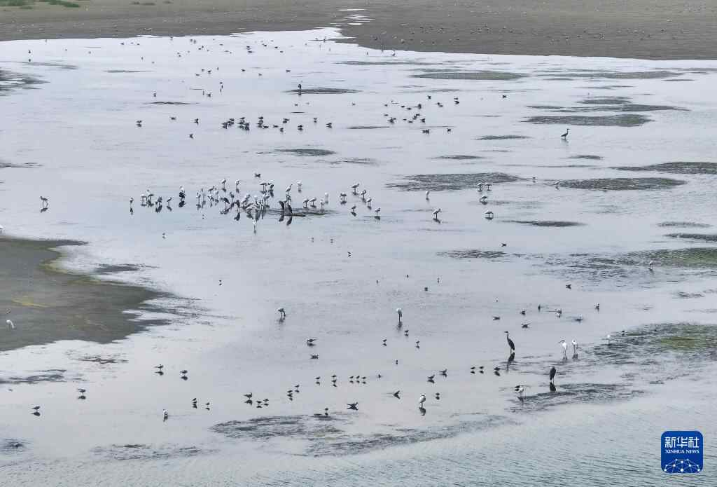 8月25日拍摄的东台条子泥湿地“720”高潮位栖息地(无人机照片)。