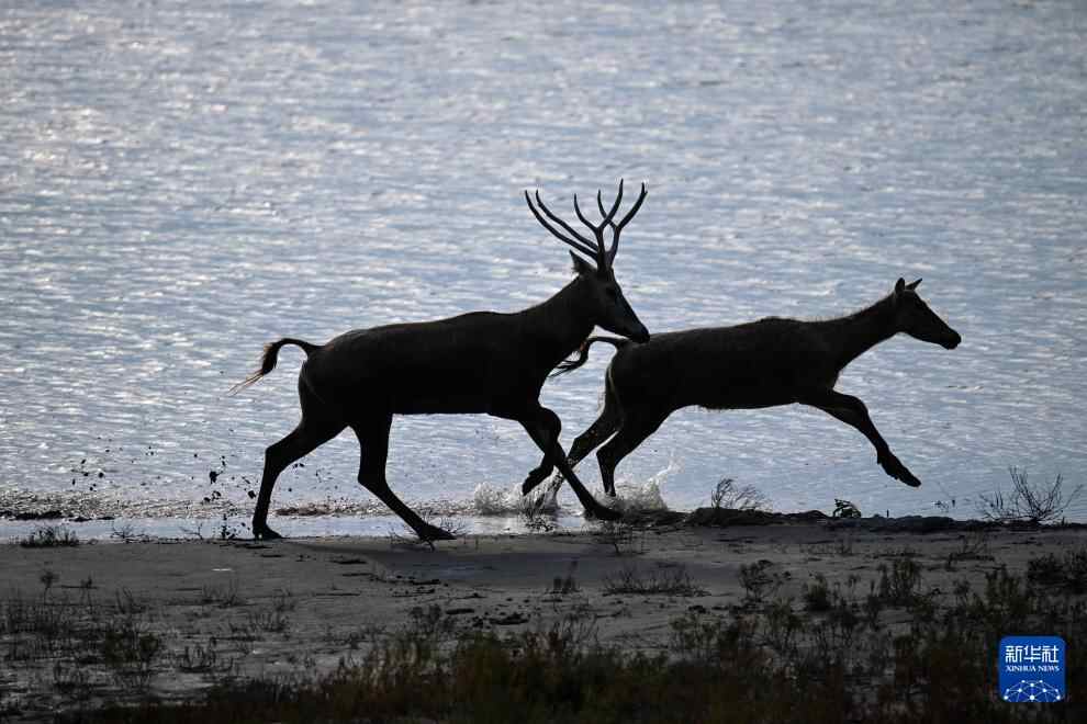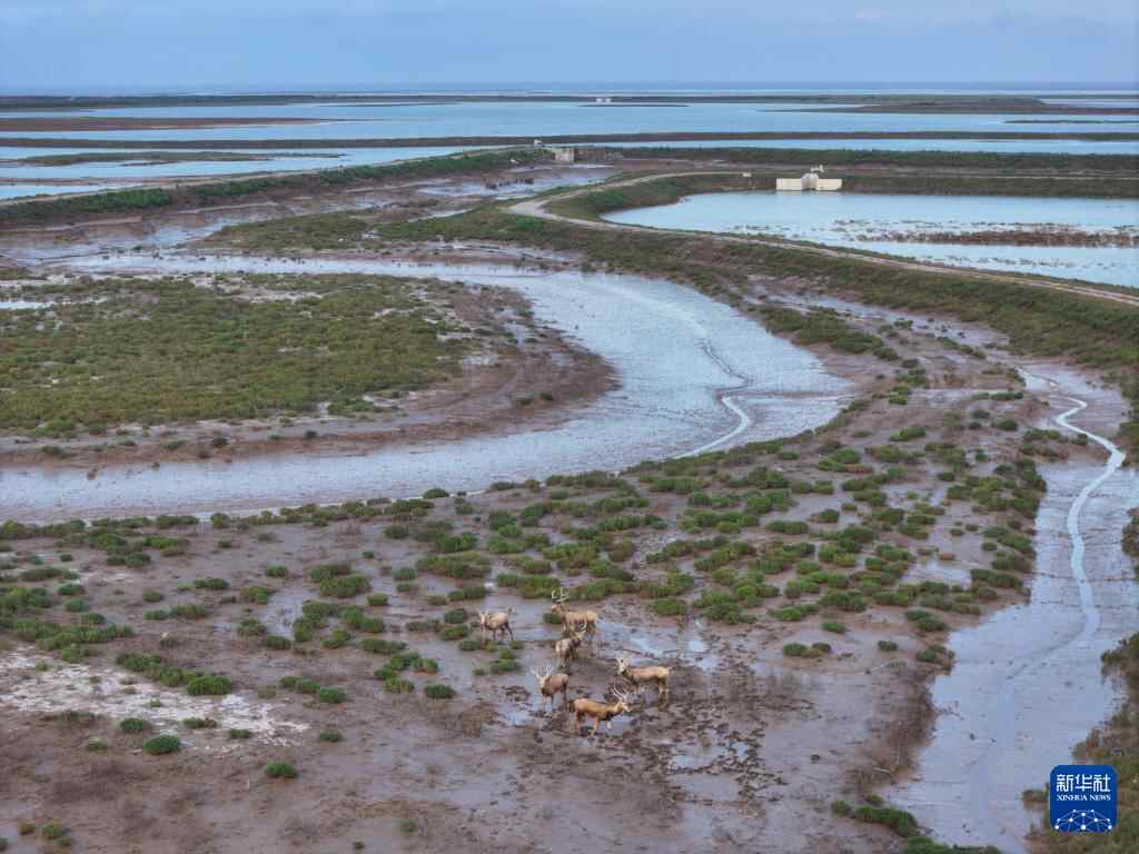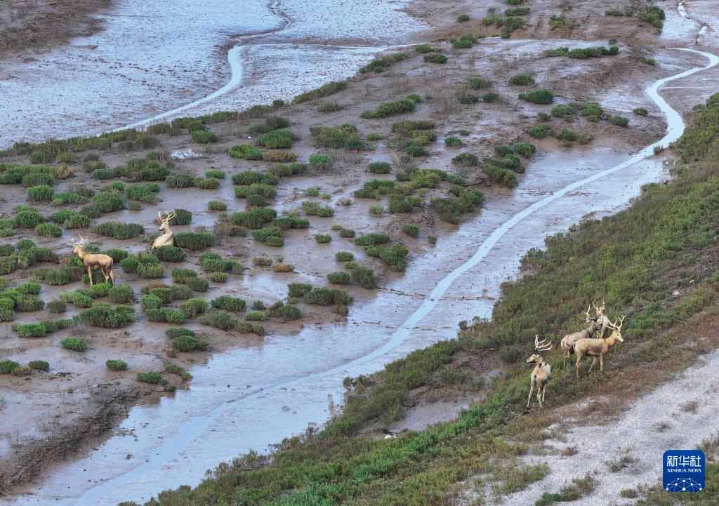 8月25日,野生麋鹿栖息在川水湾(无人机照片)。