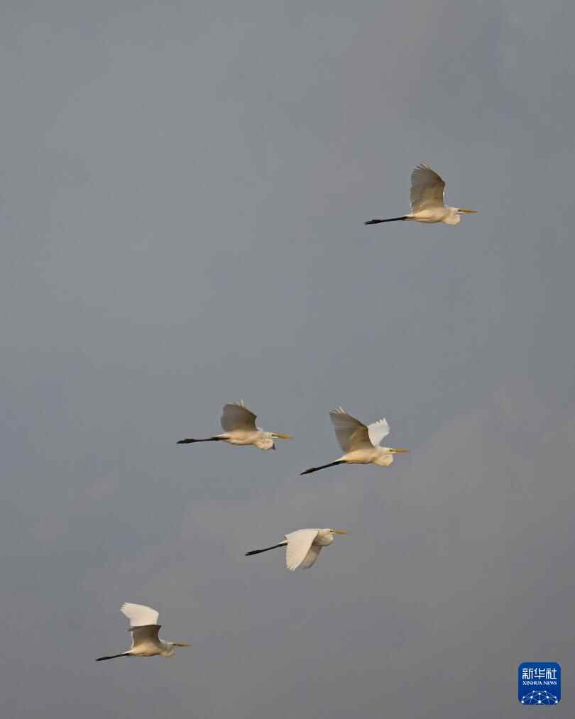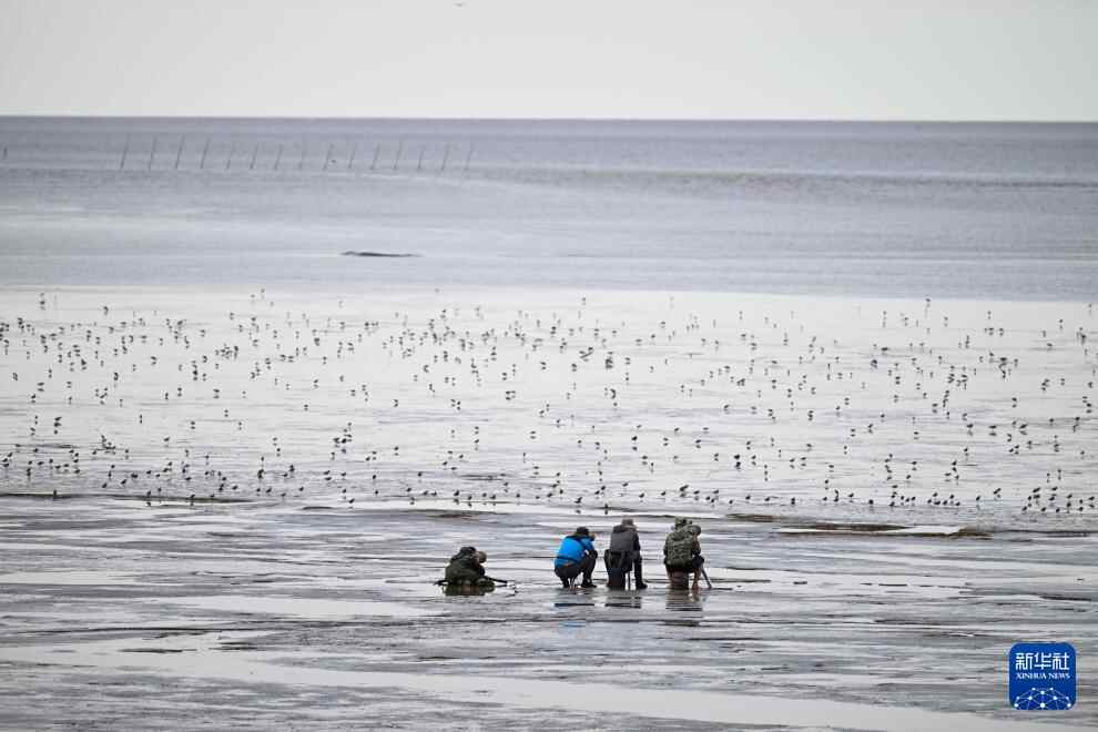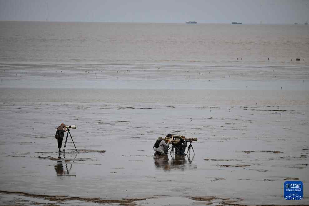 8月25日,摄影爱好者、鸟类保护者在东台条子泥湿地拍摄观测鸟类。