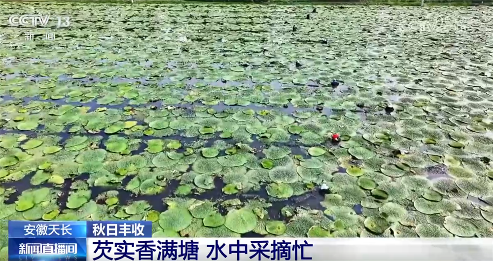 安徽天长:芡实香满塘 水中采摘忙