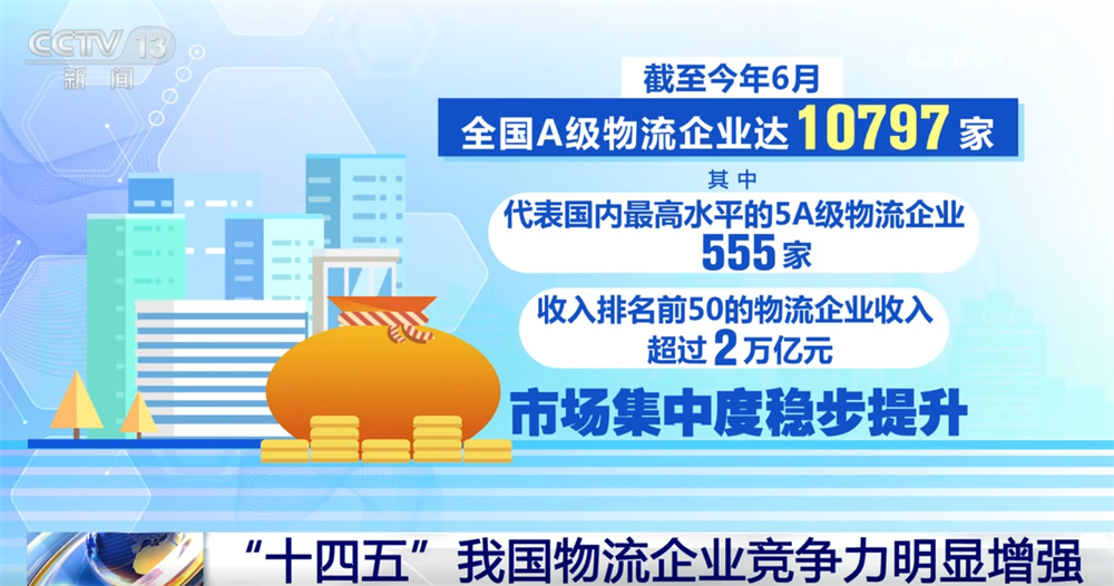 “十四五”期间,物流服务供给更加优质,市场集中度稳步提高,我国物流企业的竞争力明显增强。