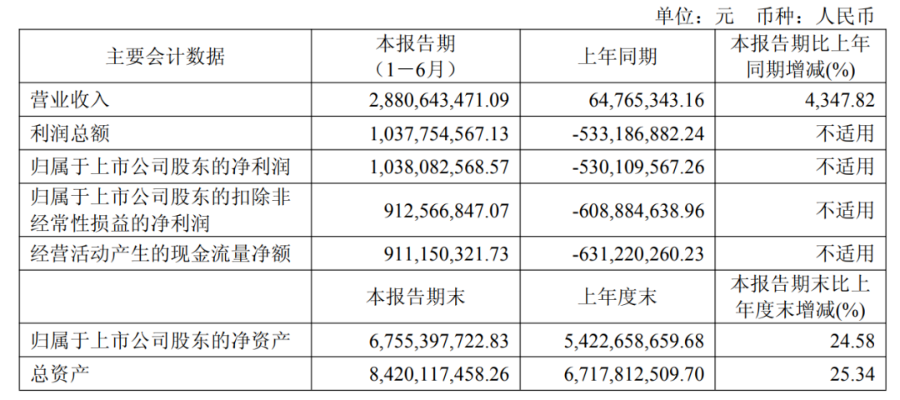 8月26日晚,寒武纪发布2025年半年度报告。半年报显示,2025年上半年,公司实现营业收入28.81亿元,同比增长4347.82%;实现归母净利润10.38亿元,去年同期为-5.33亿元,同比扭亏;经营活动现金流量净额为9.11亿元,去年同期为-6.31亿元。