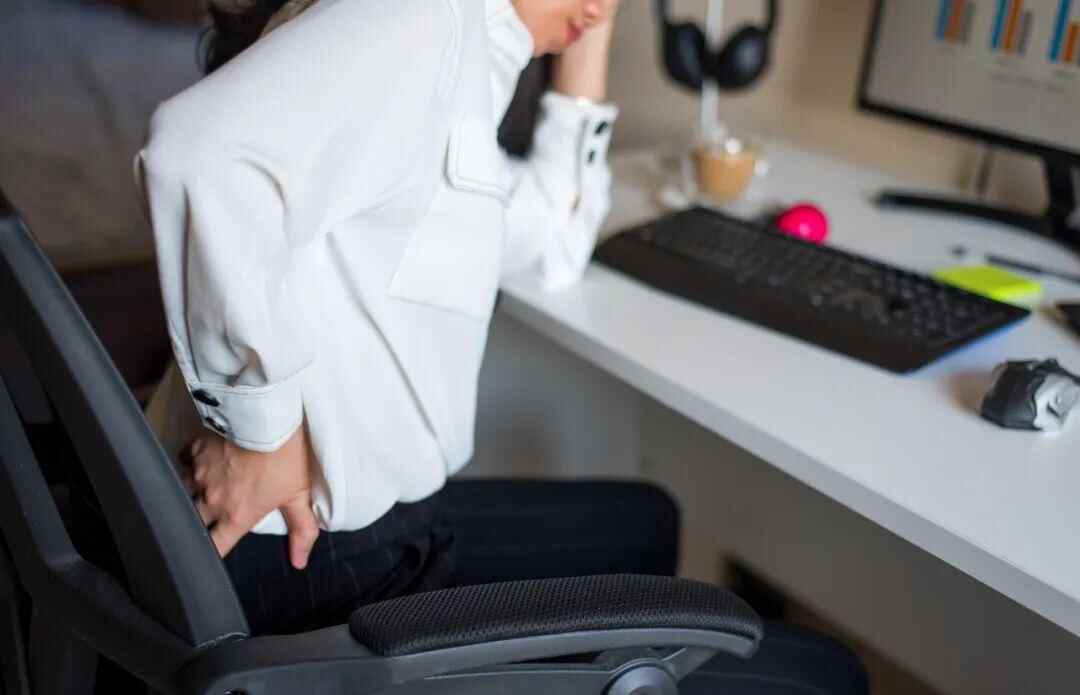 久坐+错误坐姿:坐位时腰椎间盘的压力是站立时的1.5倍,而前倾坐位时压力升高至接近3倍,持续压迫椎间盘,导致腰肌劳损、腰椎间盘膨出或突出。