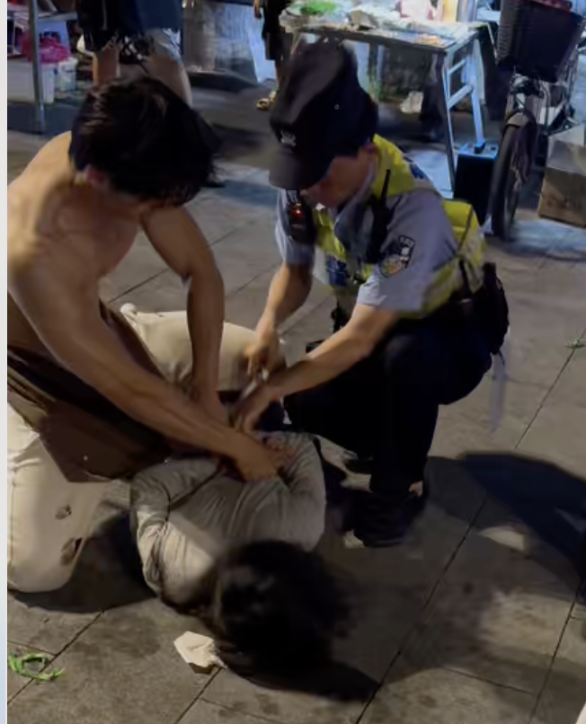 在经历被夺刀女子踢、拽等反抗后,小黄最终将刀夺下,摆摊的老白也过来帮忙将二人拉开,制伏了女子。随后他们报警,隔天25日警察发布了通告。