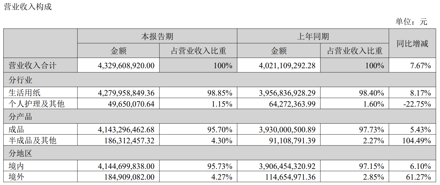 半年报显示,中顺洁柔生活用纸业务收入占比高达98.85%,仍然是绝对支柱。公司自身也承认,本期业绩改善主要受益于纸浆价格下降和成本管控优化,而非新业务的突破。这种依赖结构使企业暴露在国际纸浆价格波动的风险之下。纸浆占总生产成本的40%-60%,一旦全球大宗原料进入上行周期,中顺洁柔利润空间便会被严重压缩。