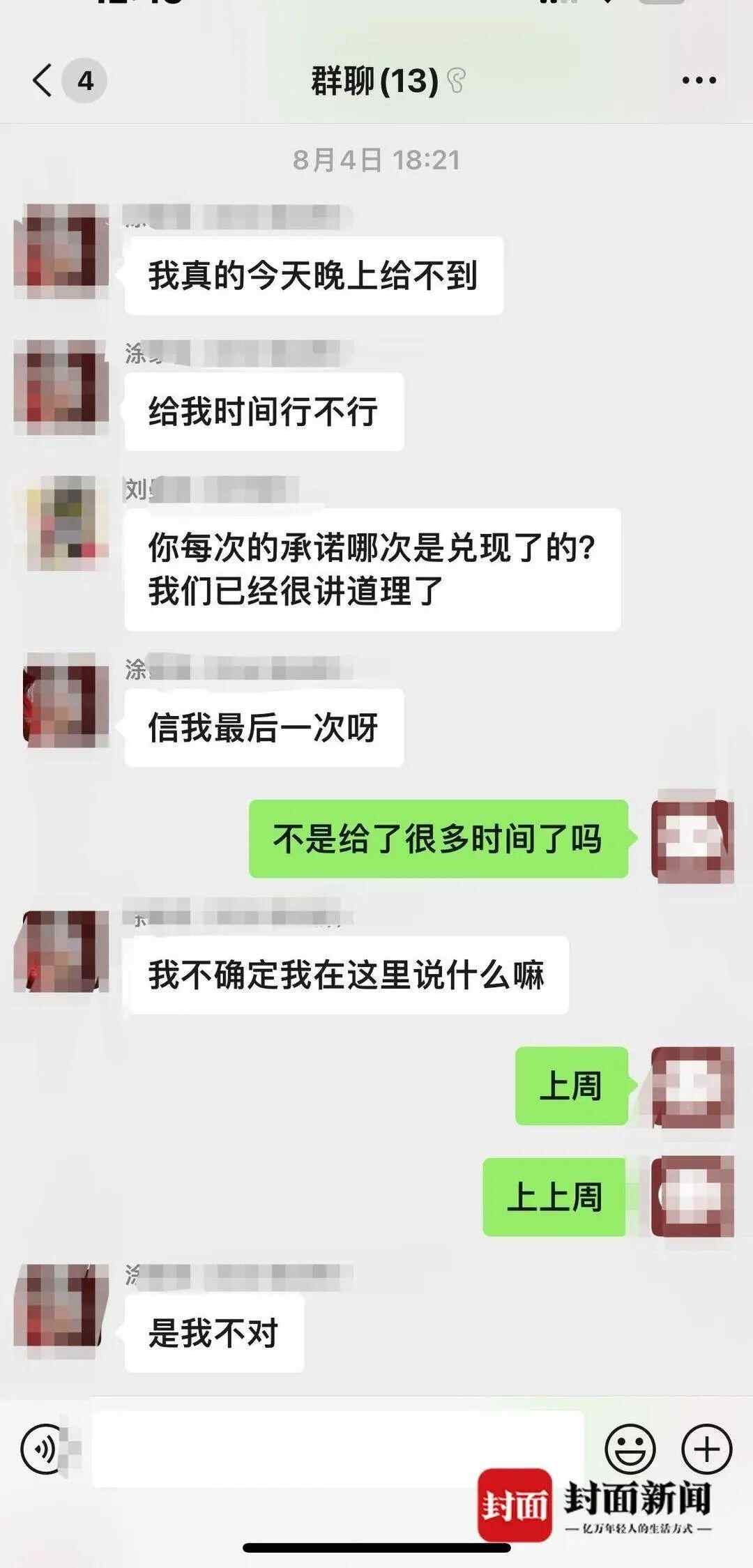 26日,封面新闻记者也联系到涂某。对于拖欠员工工资一事,涂某予以承认,并表示公司正积极推进解决,“大概在10月、11月基本上就能解决完。”
