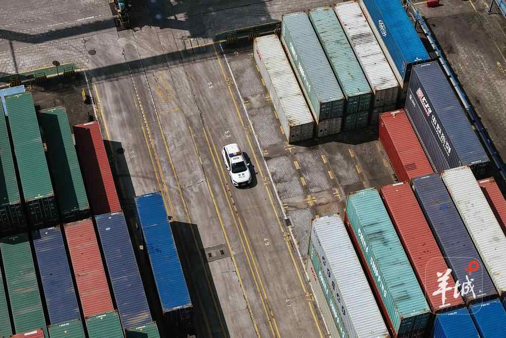 从空中俯瞰,画面颇为壮观:成千上百辆汽车排列整齐,两道瘦削的人影游走在车辆缝隙间。“要特别注意有没有车辆被损坏。”吴锐彬提到,码头散落的粮食吸引许多鸟儿前来觅食,为避免附近居民用弹弓打鸟,导致钢珠坠落击穿汽车玻璃,造成货物损失的意外,新沙派出所专门加强了汽车堆场的巡逻频次。