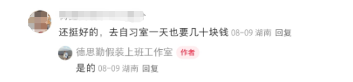 在小红书平台上,该服务的宣传吸引了不少关注。评论区里,有人表示想来交朋友,不想一天到晚待在家里;有人单纯需要一个好的办公环境;还有人说:“还挺好的,去自习室一天也要几十块钱。”