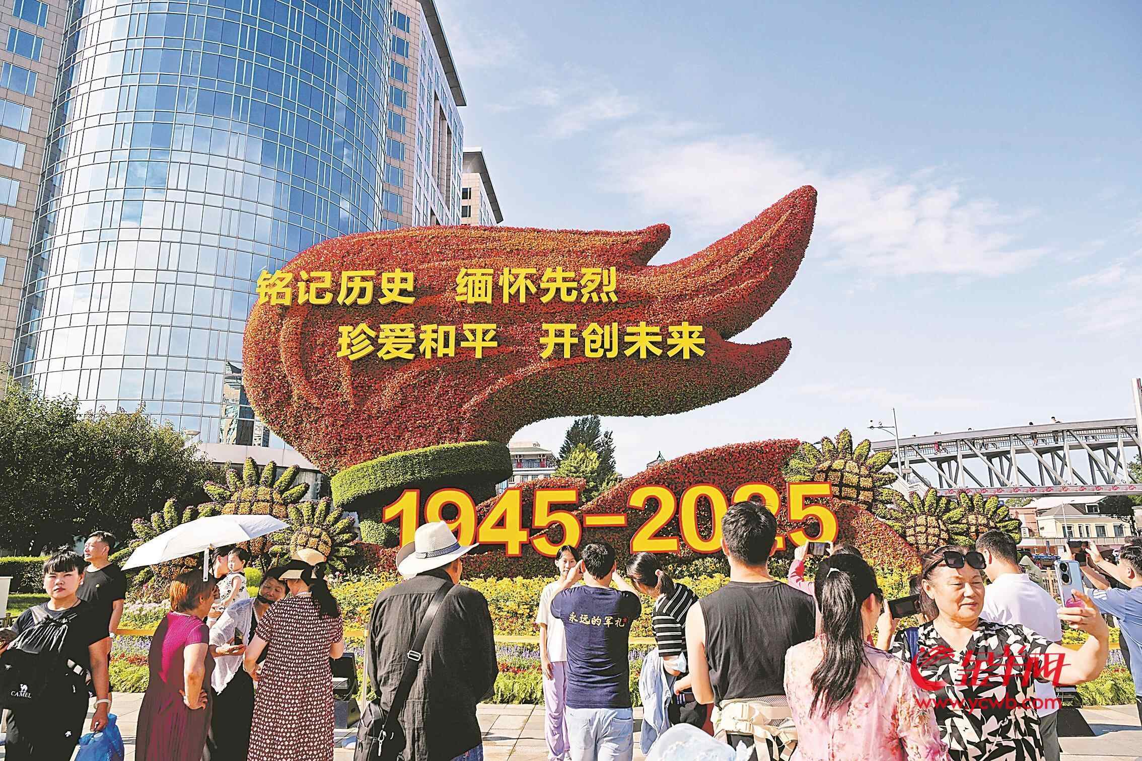 纪念抗战胜利80周年主题花坛亮相,吸引众多市民游客打卡