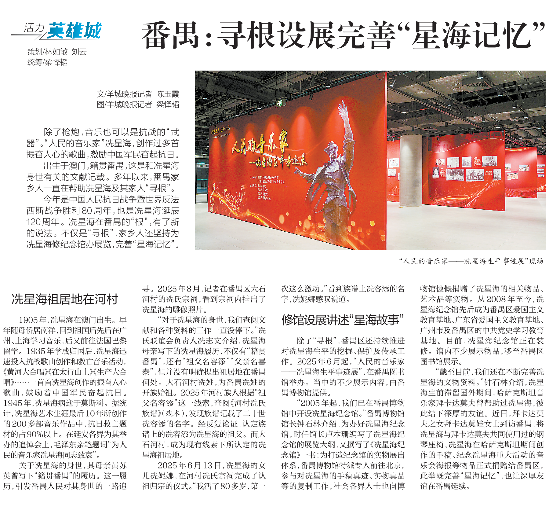 今年是中国人民抗日战争暨世界反法西斯战争胜利80周年,也是冼星海诞辰120周年。冼星海在番禺的“根”,有了新的说法。不仅是“寻根”,家乡人还坚持为冼星海修纪念馆办展览,完善“星海记忆”。
