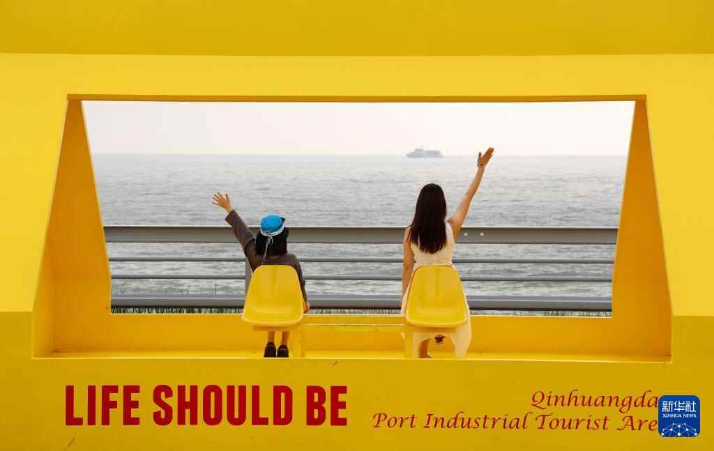 8月22日,游客在河北省秦皇岛市西港花园景区拍照打卡。