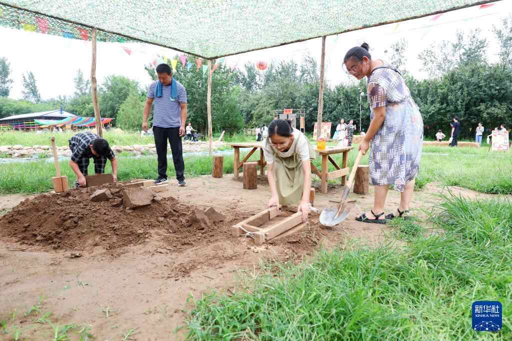 8月23日,游客在河北省石家庄晋州市周家庄农业特色观光园体验农事。