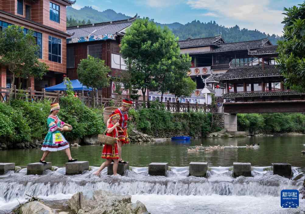 8月22日,游客在湖南省娄底市新化县天门乡土坪村休闲游玩。