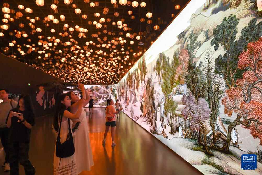 8月20日,游客在江苏省南京市新街口一家商场内观赏拍摄“金陵图数字艺术展”。