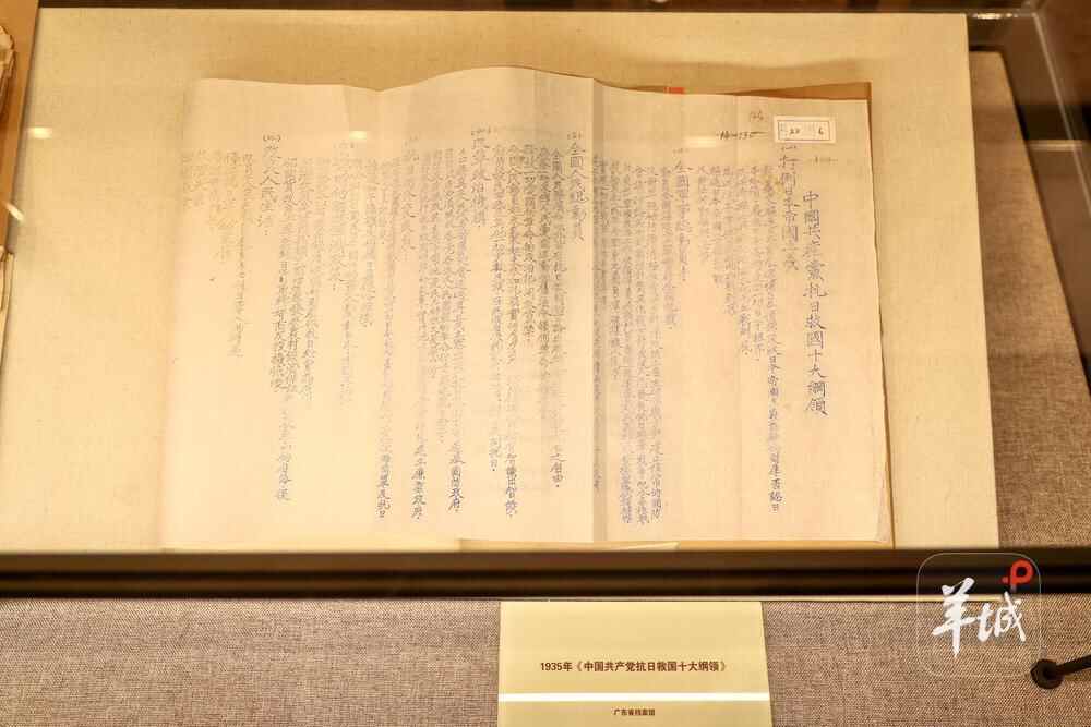 专题展现场,多个重磅展品亮相,包括《中国共产党为日军进攻卢沟桥通电》(1937年7月8日 )、《为抗日救国告全国各校学生和各界青年同胞宣言》(1935年12月20日)、抗日战争时期《广东青年抗日先锋队队歌》雕版印刻、广东青年抗日先锋队队徽印章等等。