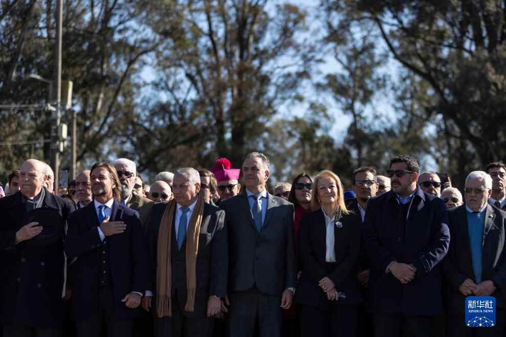 8月25日,乌拉圭总统奥尔西(中)在乌拉圭南部城市佛罗里达参加乌拉圭宣告独立200周年纪念活动。