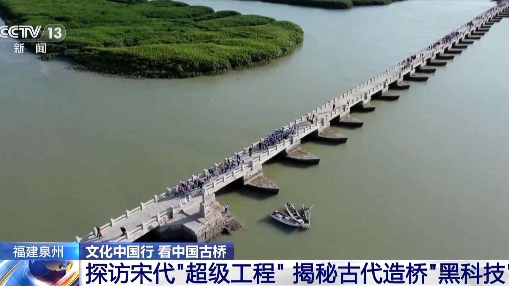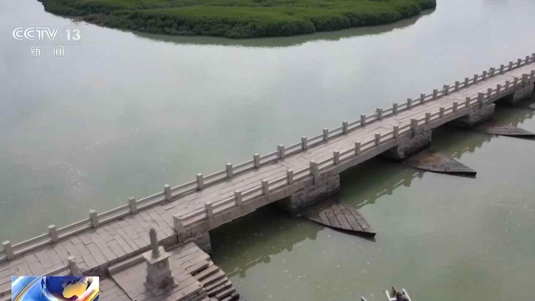 总台记者 赵晟萱:洛阳桥的桥面,是由300多条坚固的条石铺就而成,大家仔细看,可以发现这些石板的颜色有深有浅,表面风化的程度也各不相同。这是因为近千年来,洛阳桥经历了大大小小26次修缮,这些石板有些来自宋代,有些来自历朝历代修缮时候留下,它们都见证了古桥的沧桑变化。