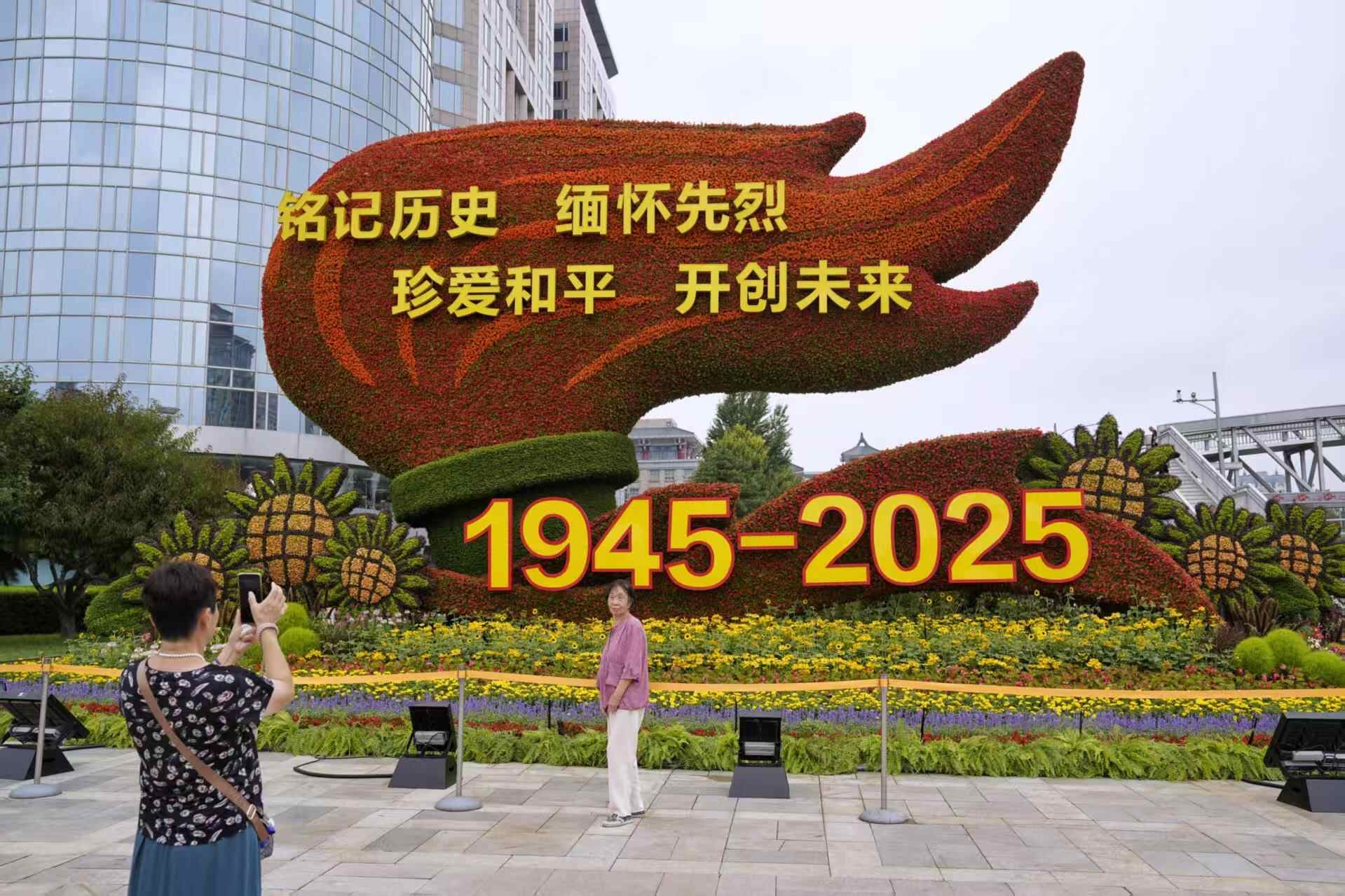 8月26日,中国人民抗日战争暨世界反法西斯战争胜利80周年纪念活动长安街沿线花卉布置方案公布。建国门至复兴门之间共布置10组立体花坛,东侧5组花坛以独特设计展现了中华民族英勇无畏、可歌可泣的伟大胜利,西侧5组花坛以精妙构思展现了新时代在复兴伟业征程上取得的卓越成就。