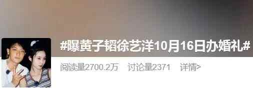 近日,网传黄子韬在节目中透露今年10月办婚礼。随后#曝黄子韬徐艺洋10月16日办婚礼#的话题登热搜,引发关注。