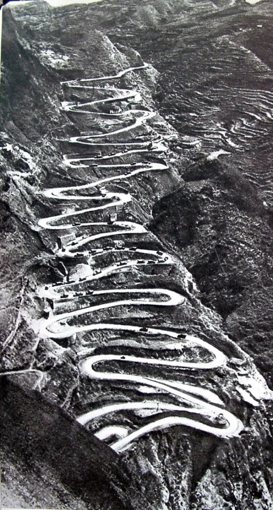 1945年3月26日的晴隆二十四道拐,国际援华物资运输车队正蜿蜒通过