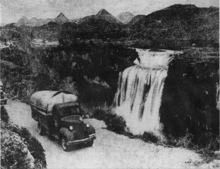 运送抗战物资的车辆经过黄果树大瀑布