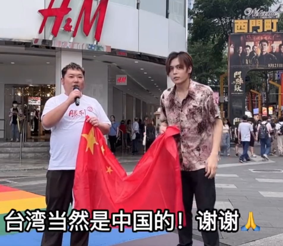 据中国新闻网援引台媒报道,两名日本籍男子日前在台北西门町手举中国国旗并强调“台湾是中国的”,遭岛内“反中”网红举报。