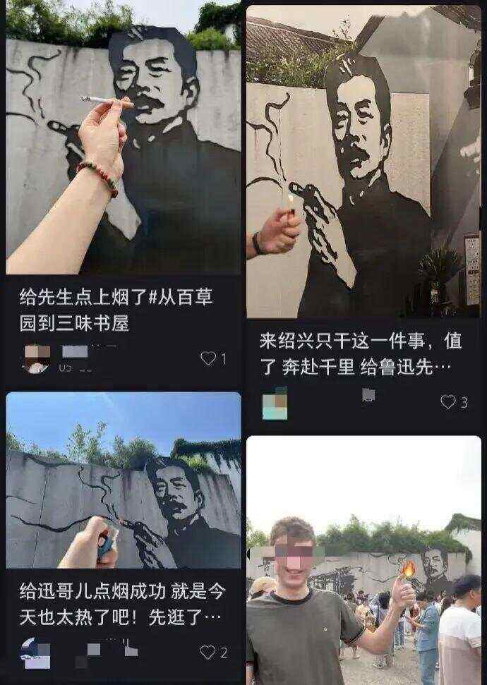 近日,浙江绍兴鲁迅纪念馆有一面鲁迅手里夹着香烟的网红打卡墙,被游客投诉,话题一度冲上热搜。
