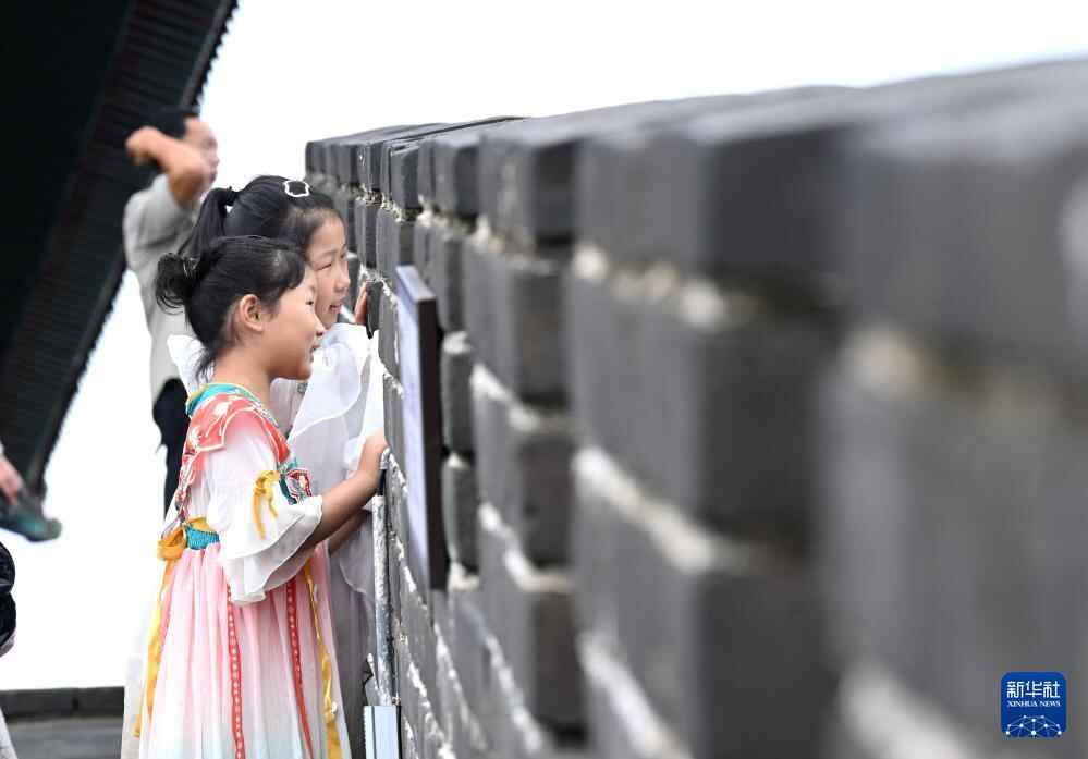 8月24日,参加研学活动的小朋友在南京城墙博物馆参观。