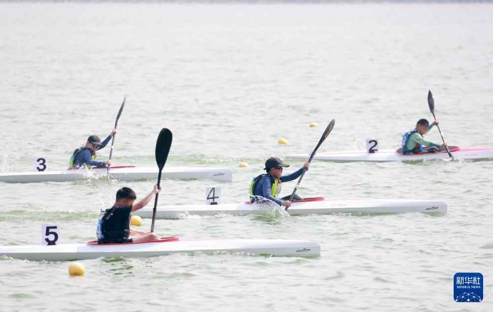 8月23日,小朋友在山东省临沂市沂河水上运动中心参加200米皮艇运动比赛。