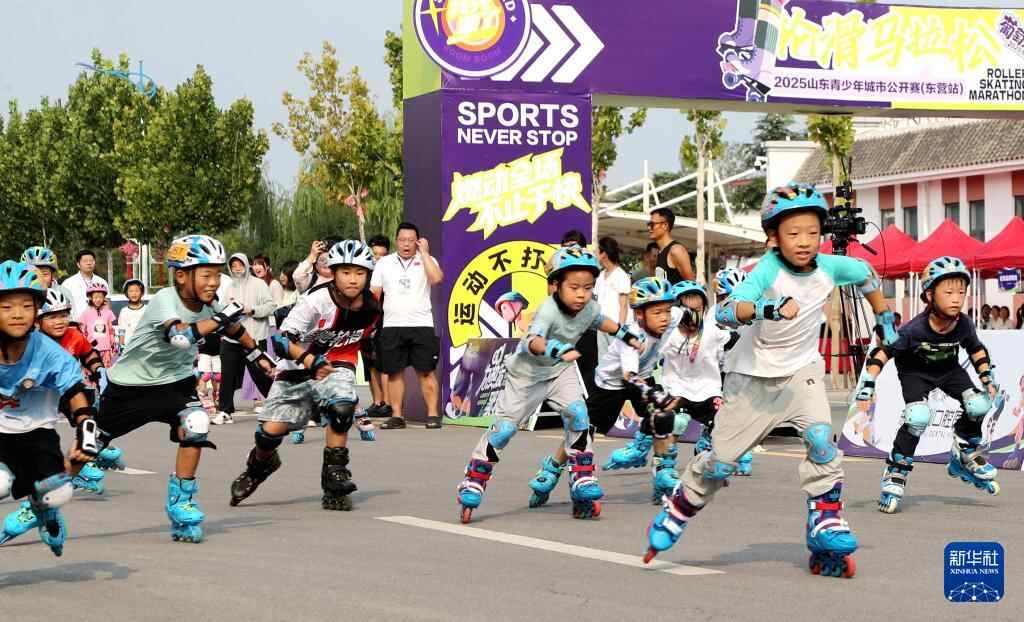 8月23日,小选手在山东青少年轮滑马拉松城市公开赛(东营站)比赛中竞技。