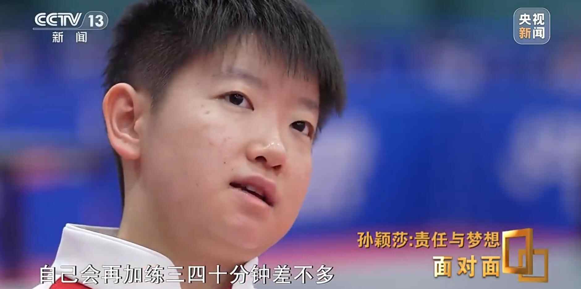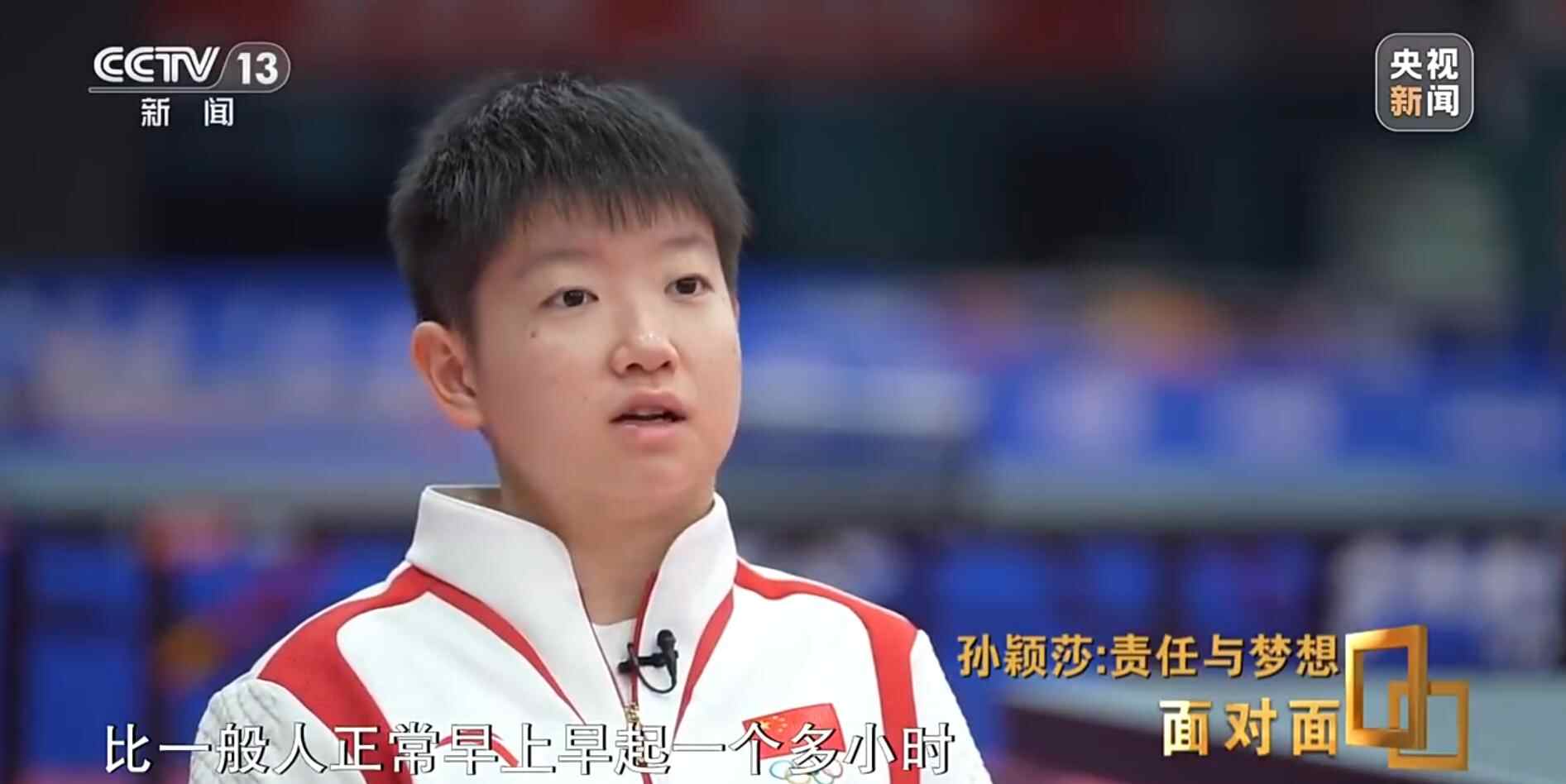 此前,接受央视采访时,孙颖莎说:“正常7:30出早操,我6:30出早操,练接发球;晚上再加练30-40分钟。”“因为想成为比一般人更优秀的人,一直在追求自己目标,我很幸福。”