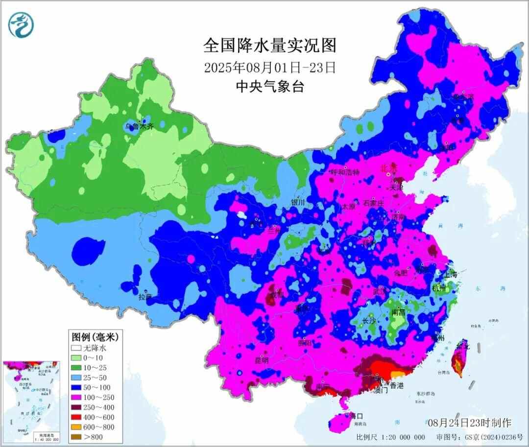转眼看北方,形势就完全不一样了,一些地方(比如北京)雨水多到都不像北方了。