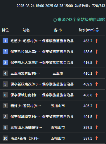 撼动不了高温区,“剑鱼”却能折腾一下离得近的海南岛。昨天到今天,受“剑鱼”影响,海南南部的三亚、保亭、五指山多地出现特大暴雨。尽管没有直接登陆,但昨晚在“剑鱼”掠过海南岛南边海域时,三亚处于西行台风北侧风最强的眼壁区,记录到了超17级的破纪录阵风。