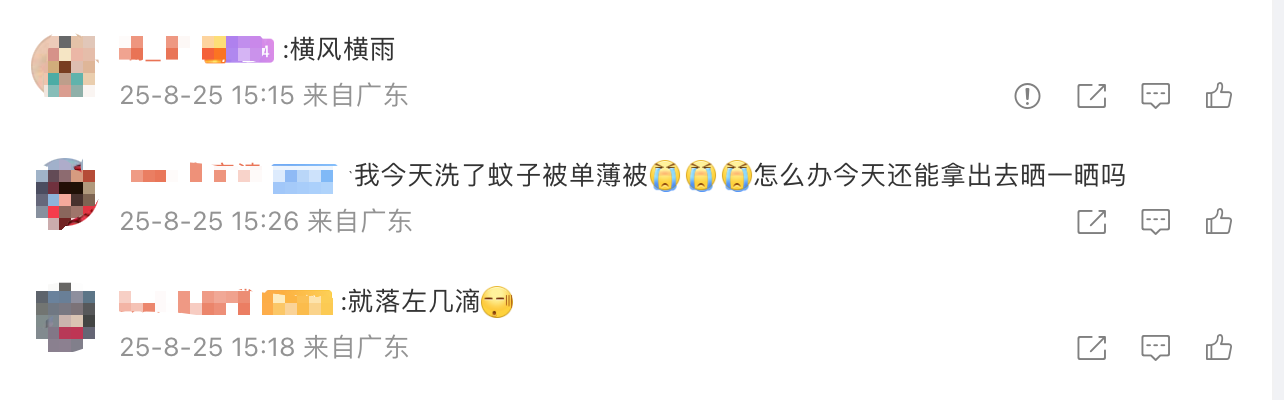 25日午后时分,广州、东莞、佛山、江门等地上空雷雨云团活跃,又开始疯狂“倒开水”。