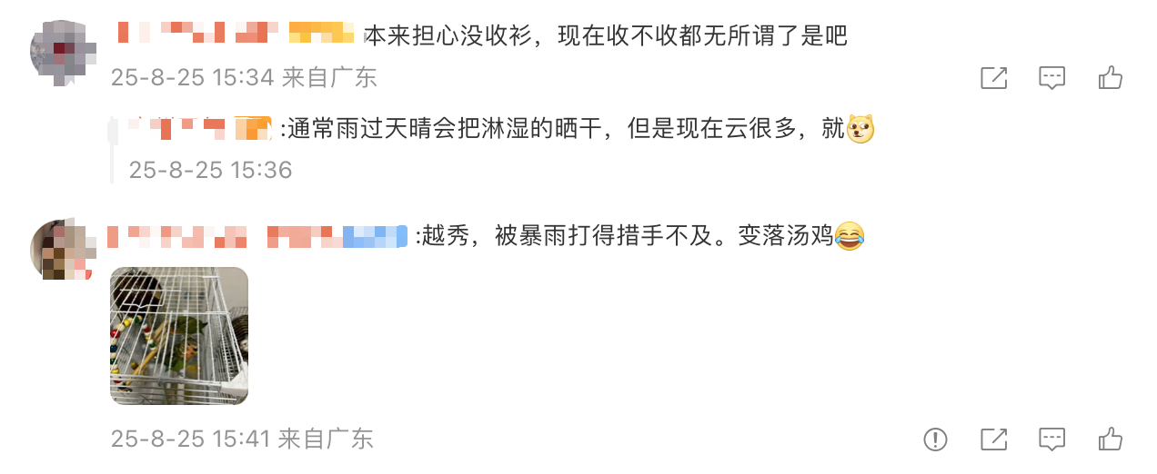 有网友表示:被暴雨淋成了“落汤鸡”;午后雷雨来得快,走得也快。