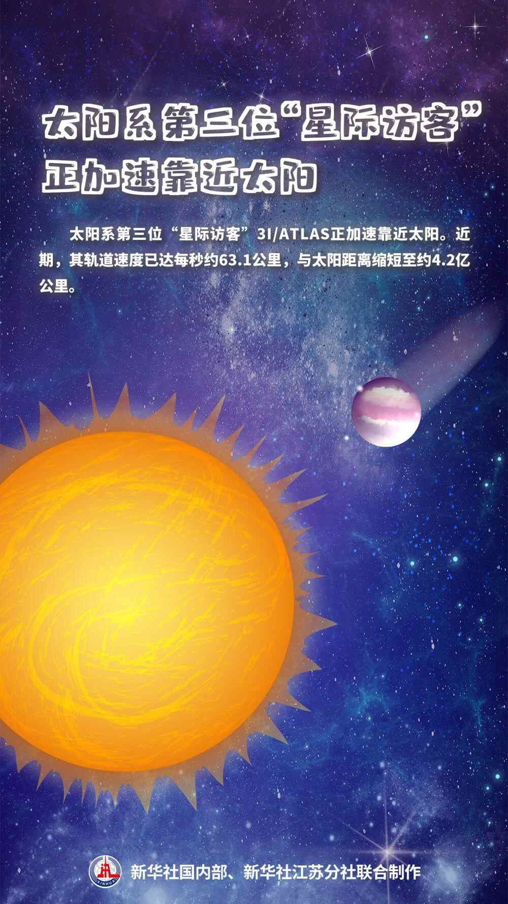 再来看看星空舞台最新动态。最近,太阳系第三位“星际访客”3I/ATLAS正加速靠近太阳。
