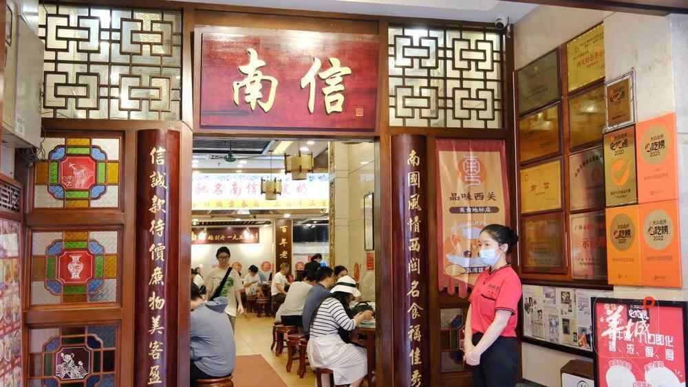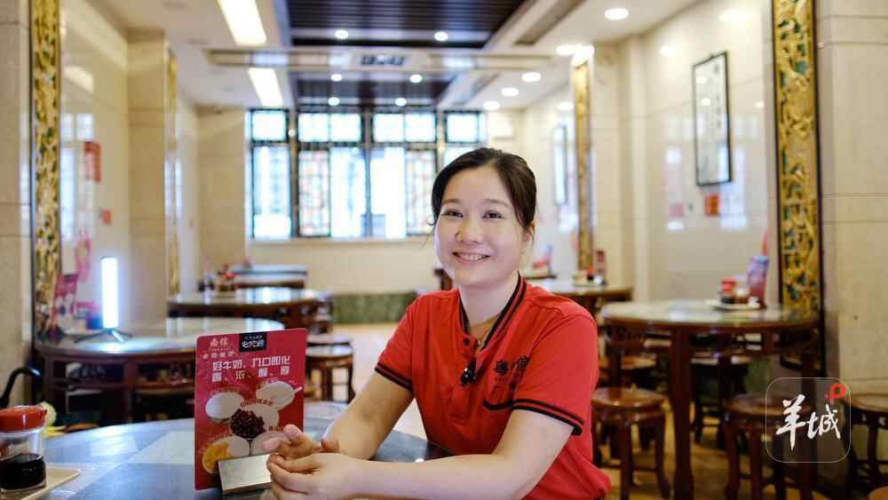“80后”杨颖是南信如今的主理人、“广式甜品制作工艺”市级非遗代表性传承人。她祖籍佛山顺德,外公于20世纪40年代到广州西关一带挑担卖糖水为生;母亲在国营饮食单位任职,在20世纪90年代主动调任南信担任经理,2000年左右全面接手经营南信,延续家族糖水情缘。
