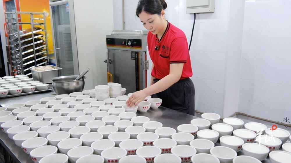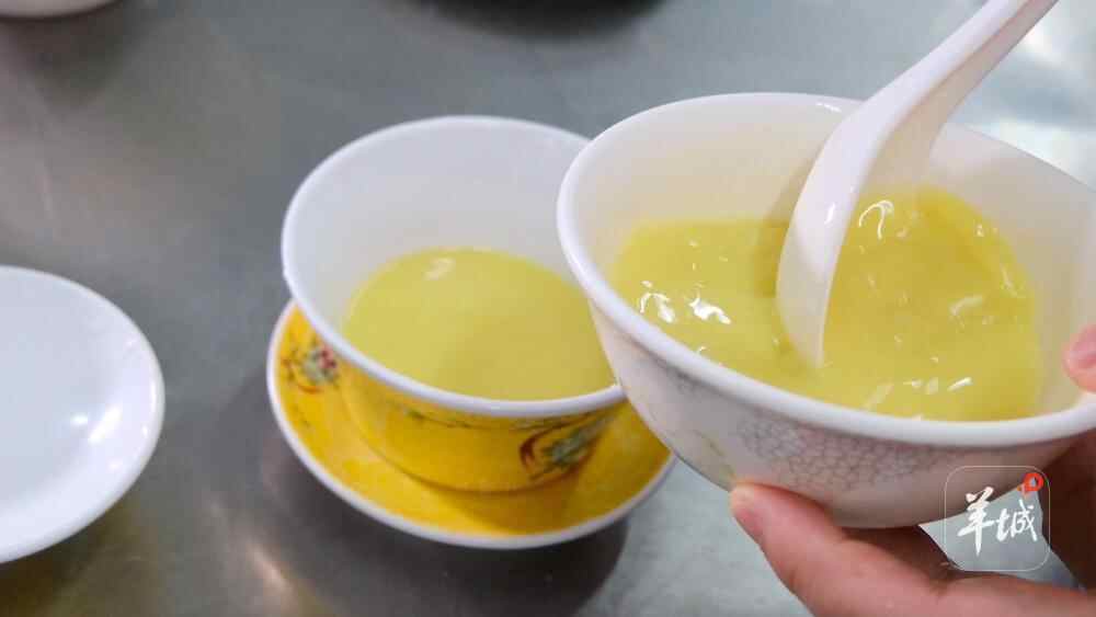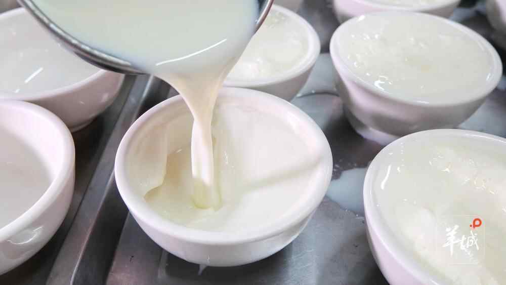 杨颖介绍:“双皮奶的精髓在于水牛奶,其蛋白质、脂肪含量比普通牛奶高,能形成醇厚奶皮。”制作时,先加热水牛奶,在凝结的奶皮上戳小洞,将水牛奶倒出后加入蛋清、糖充分搅拌,再通过小孔灌注回去,奶皮一浮一沉,便是“双皮奶”;再经慢火炖煮约20分钟制成。味觉灵敏的老食客,能通过奶香味辨别双皮奶是否由南信出品。