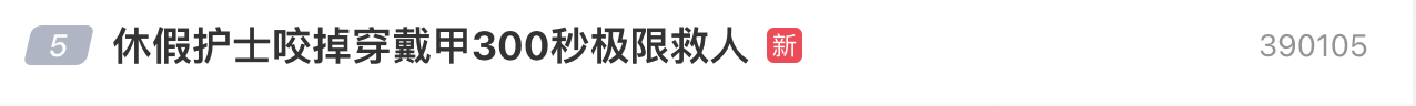 近日,广东护士李梦旖在休假期间的极限救人举动,热度不减,赢得广大网友点赞。8月24日,“广东休假护士咬掉穿戴甲300秒极限救人”已冲上微博热搜第五位。